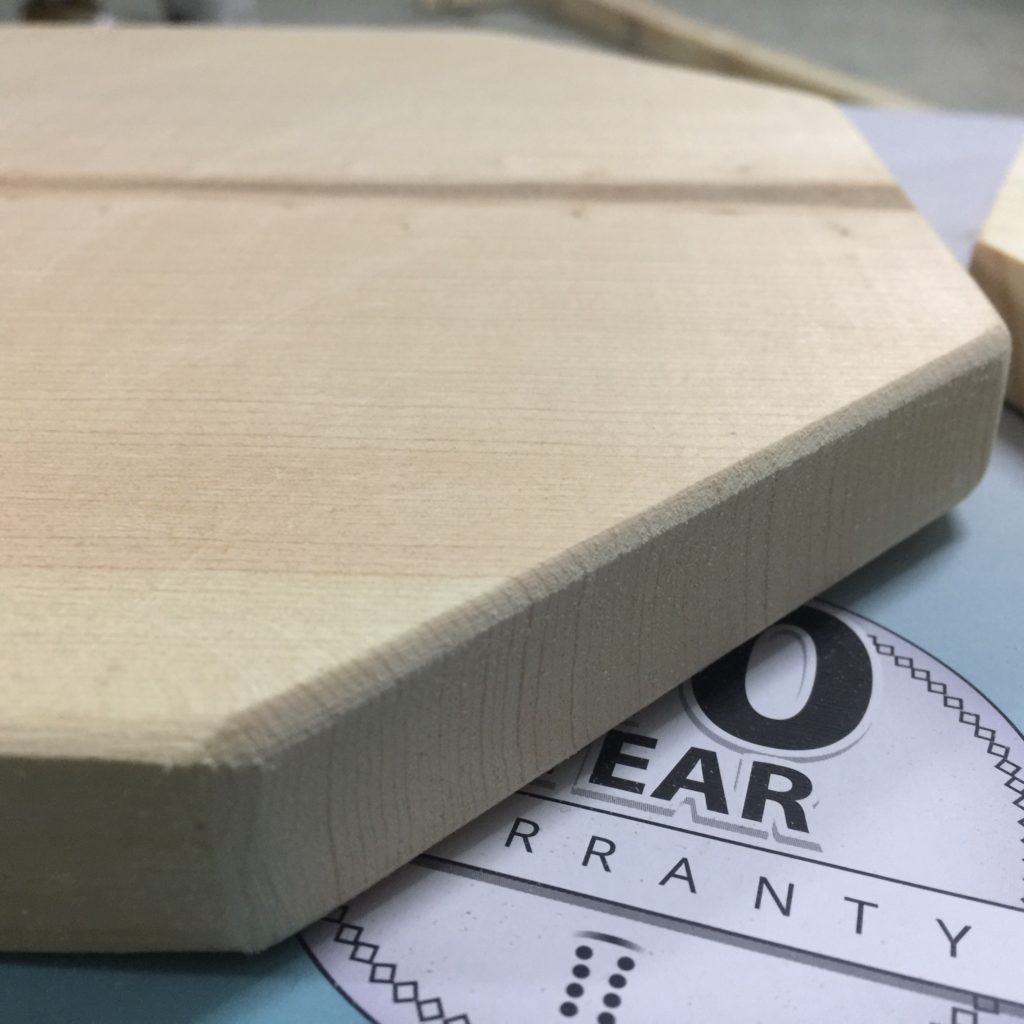 First of all, based off the size of our mason jars, we decided to cut our 1″ x 10″ boards to a length of 15″ long for each hanging mason jar. This could end your wood cutting for your project. Simple! I told you so. But… two simple rectangles felt a little… too plain. So, I decided to make some 45 degree angled cuts on all the corners. Honestly, I didn’t bother measuring too precisely. I went about 4 inches off center and made my 45 degree miter cuts (see below). With my Dewalt Miter Saw, I was able to just stack both pieces and make the cuts for both at the same time to make sure both board would be symmetrical. I’m really glad I cut the corners off, to give the plain old rectangles a little sumthin sumthin.