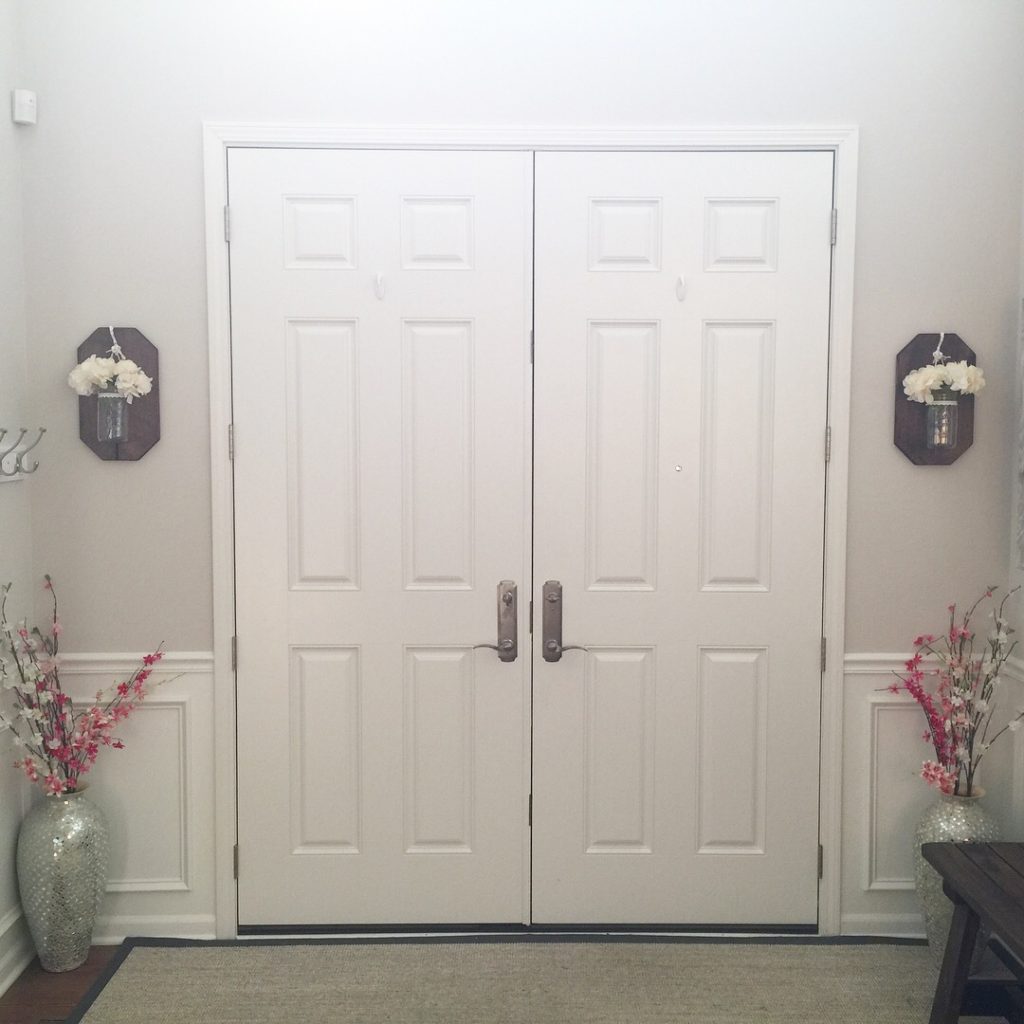We love how these two hanging mason jars turned out! We love how the warmth of the wood and brightness of the flowers make our foyer feel more homey and welcoming. And Helen and I were able to tackle this on a whim one random evening.